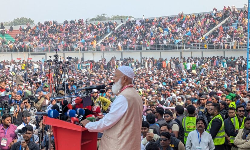ত্রয়োদশ জাতীয় সংসদ নির্বাচন উপলক্ষে সোমবার (২৬ জানুয়ারি) সকাল ১০টায় কুষ্টিয়ার শহীদ আবরার ফাহাদ স্টেডিয়ামে ১১ দলীয় নির্বাচনী ঐক্যের এক বিশাল জনসভায় প্রধান অতিথির বক্তব্য রাখেন বাংলাদেশ জামায়াতে ইসলামীর আমীর ডা. শফিকুর রহমান