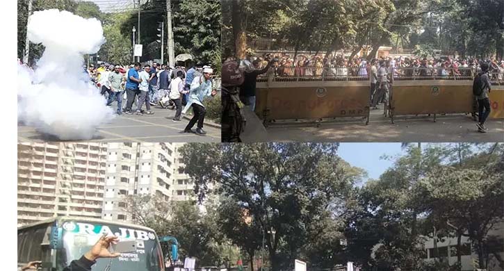 পে-স্কেল বাস্তবায়নের দাবিতে যমুনার সামনে সাউন্ড গ্রেনেড নিক্ষেপ