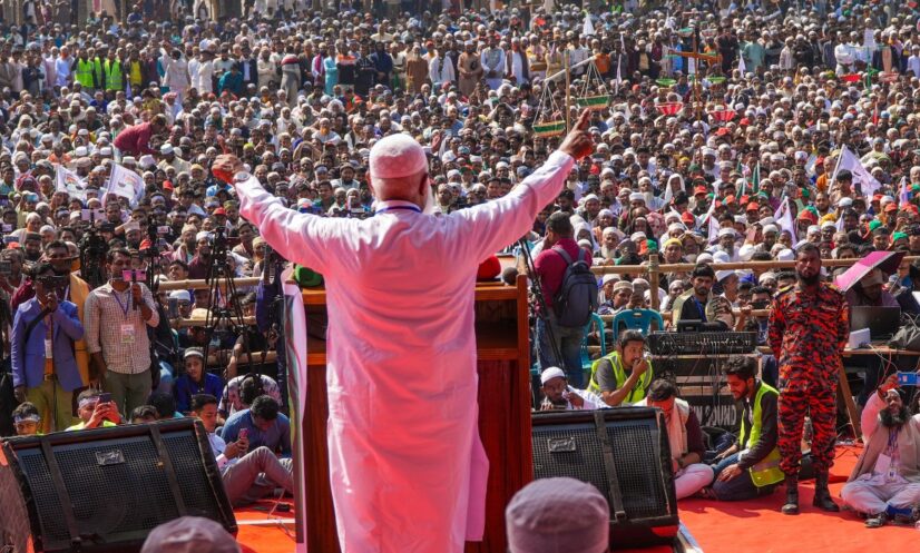 বরিশালের মেহেন্দিগঞ্জ সরকারি আরসি কলেজ মাঠে ১১ দলীয় নির্বাচনী ঐক্যের এক জনসভায় ডা. শফিকুর রহমান