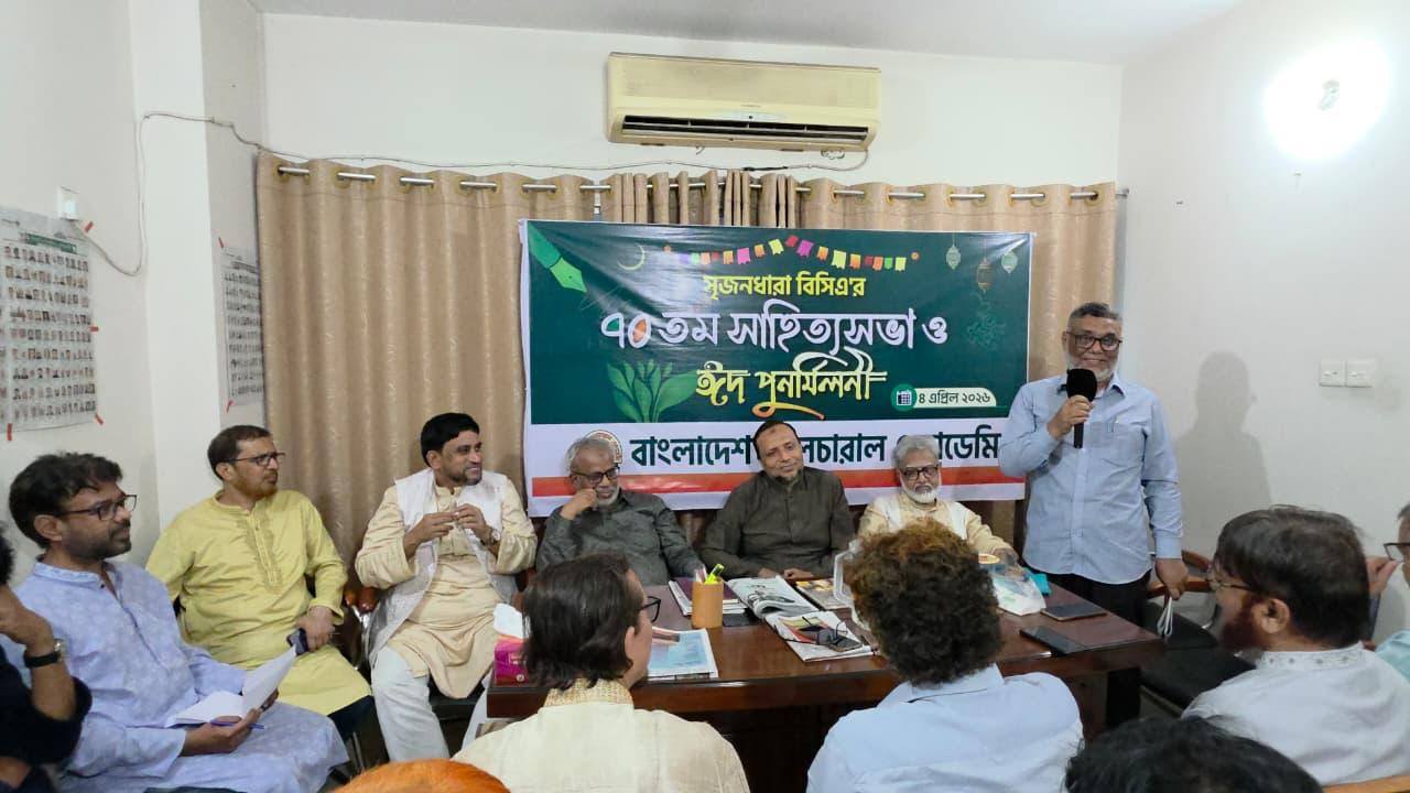 তিনি  সৃজনধারা-বিসিএ’র ৭০তম সাহিত্যসভায় ও ঈদ পুনর্মিলনী গত ৪ এপ্রিল প্রধানঅতিথির বক্তব্যে এ কথা বলেছেন। বাংলাদেশ কালচারাল একাডেমির সভাপতি জনাব আবেদুর রহমানের সভাপতিত্বে অনুষ্ঠিত এ সাহিত্যসভায় বিশেষ অতিথি হিসেবে উপস্থিত ছিলেন দেশের খ্যাতিমান কবি সোলায়মান আহসান ও দৈনিক নয়া দিগন্তের সাহিত্য সম্পাদক বিশিষ্ট কবি জাকির আবু জাফর। আমন্ত্রিত অতিথিদের মধ্যে ছিলেন কবি নাসির হেলাল, কবি ও গবেষক ড. ইয়াহ্ইয়া মান্নান, কথাসাহিত্যিক নাসীমুল বারী, কবি আতিক হেলাল। স্বাগত বক্তব্য পেশ করেন বিসিএ’র সম্মানিত সেক্রেটারি কবি ইবরাহীম বাহারী।