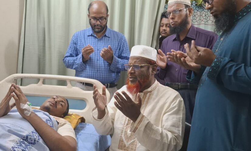 ছাত্রদলের সন্ত্রাসী কর্তৃক মারাত্মক আহত আশরাফুলকে দেখতে হাসপাতালে মিয়া গোলাম পরওয়ার