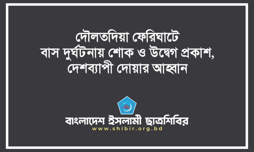 রাজবাড়ীর গোয়ালন্দ উপজেলার দৌলতদিয়া ফেরিঘাটে যাত্রীবাহী বাস পদ্মা নদীতে পড়ে এখন পর্যন্ত ১৮ জন নিহত এবং আরও অনেকের নিখোঁজ হওয়ার ঘটনায় গভীর শোক ও উদ্বেগ প্রকাশ করেছে বাংলাদেশ ইসলামী ছাত্রশিবির। আজ (২৬ মার্চ) এক যৌথ বিবৃতিতে ছাত্রশিবিরের কেন্দ্রীয় সভাপতি নূরুল ইসলাম ও সেক্রেটারি জেনারেল সিবগাতুল্লাহ এ শোক ও উদ্বেগ প্রকাশ করেন।