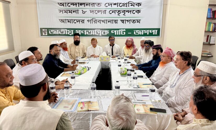 জাগপা সহ-সভাপতি ও দলীয় মুখপাত্র রাশেদ প্রধান-এর সভাপতিত্বে ৮ দলের লিয়াজো কমিটির বৈঠকে বক্তব্য রাখেন বাংলাদেশ জামায়াতে ইসলামীর সহকারী সেক্রেটারি জেনারেল হামিদুর রহমান আজাদ, ইসলামী আন্দোলন বাংলাদেশের প্রেসিডিয়াম সদস্য আশরাফ আলী আকন্দ, বাংলাদেশ খেলাফত মজলিসের যুগ্ন মহাসচিব আতাউল্লাহ আমিন, খেলাফত মজলিসের সিনিয়র নায়েবে আমির সাখাওয়াত হোসাইন ও যুগ্ন মহাসচিব মোস্তাফিজুর রহমান ফয়সাল, বাংলাদেশ নেজামে ইসলাম পার্টির মহাসচিব মুসা বিন ইজহার চৌধুরী ও সিনিয়র নায়েবে আমির আব্দুল মাজেদ আতাহারী, বাংলাদেশ খেলাফত আন্দোলনের মহাসচিব ইউসুফ সাদেক হাক্কানি ও নায়েবে আমির মুজিবুর রহমান হামিদী, জাগপা সাধারণ সম্পাদক অধ্যাপক ইকবাল হোসেন, বাংলাদেশ ডেভেলপমেন্ট পার্টির স্থায়ী কমিটির সদস্য আবু নাসের নূর নবী জনি ও অর্থ সম্পাদক রিয়াজ হোসাইন।আন্দোলনরত দলগুলোর পাঁচ দফা দাবি হলো– জুলাই জাতীয় সনদ বাস্তবায়ন আদেশ জারি এবং উক্ত আদেশের ওপর জাতীয় নির্বাচনের পূর্বে গণভোট আয়োজন, আগামী জাতীয় নির্বাচনে উভয় কক্ষে/উচ্চকক্ষে পিআর পদ্ধতি চালু, অবাধ, সুষ্ঠু ও গ্রহণযোগ্য নির্বাচনের জন্য লেভেল প্লেয়িং ফিল্ড নিশ্চিত করণ, বিগত ফ্যাসিস্ট সরকারের সব জুলুম নির্যাতন, গণহত্যা ও দুর্নীতির বিচার দৃশ্যমান করা এবং জাতীয় পার্টি ও ১৪ দলের কার্যক্রম নিষিদ্ধ করা।